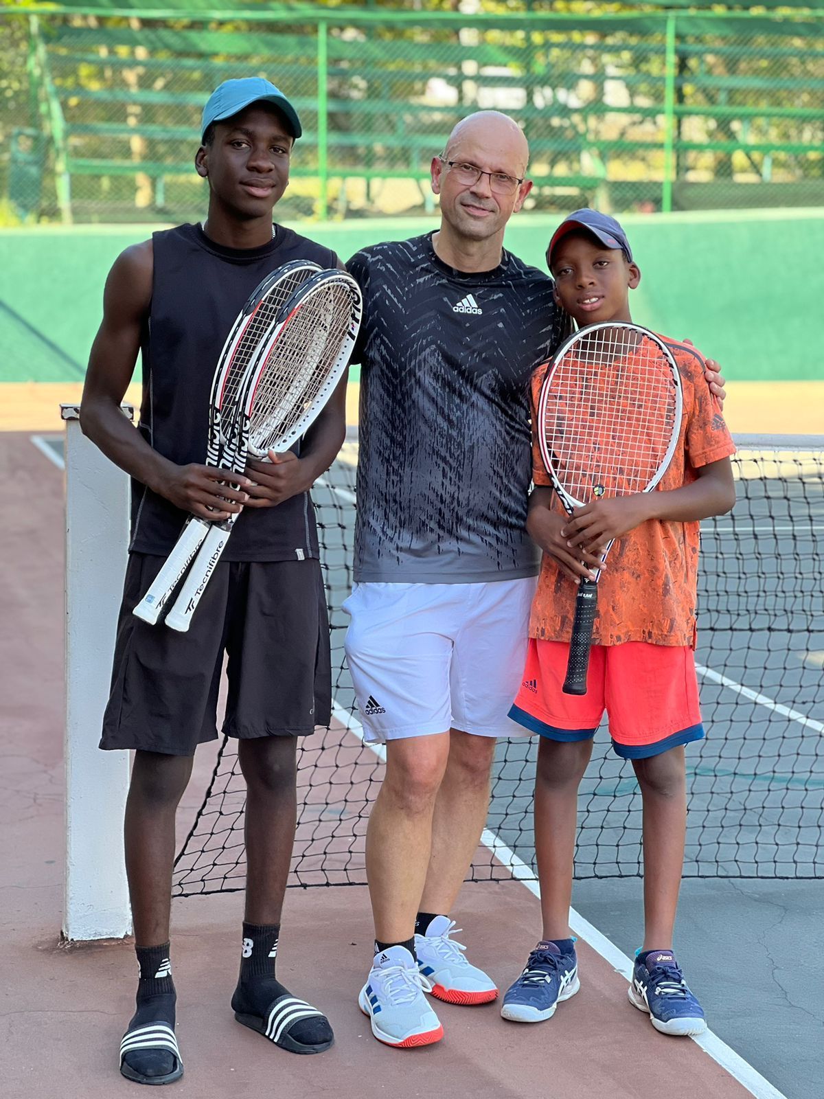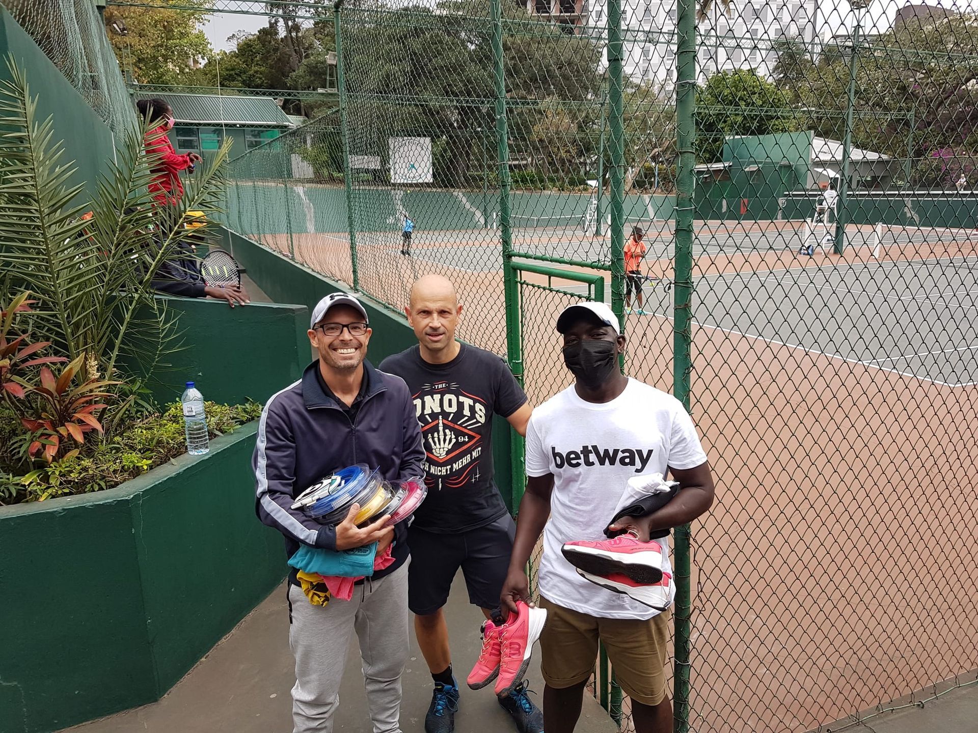 Afrika ist ein „schwarzer Fleck“ auf der Tennis-Landkarte. Grund genug für Jochen und Lars hier ein wenig Entwicklungshilfe zu leisten. Drei mal im Jahr fährt Lars nach Maputo, in die Hauptstadt Mosambiks, um die dortige Tennisschule mit Material zu versorgen und Training zu geben. Sogar Afrikas Nr. 10 trainiert dort mit unserem Material. Überzeugen Sie sich selbst von dem Talent unserer afrikanischen Jugendlichen.
